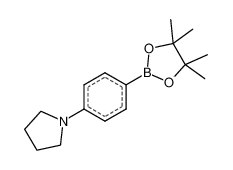 Product Name: 1-[4-(4,4,5,5-TETRAMETHYL-1,3,2-DIOXABOROLAN-2-YL)PHENYL]PYRROLIDINE Order number: 207968 CAS: 852227-90-8 Purity: 95% Appearance: n.a. MF: C16H24BNO2 MW: 273.178 MP: n.a. oC Description: Boronic acids are widely used in organic chemistry, pharmaceuticals, materials science, and sensor technology. |