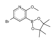 Product Name: 5-BROMO-2-METHOXY-3-(4,4,5,5-TETRAMETHYL-1,3,2-DIOXABOROLAN-2-YL)PYRIDINE Order number: 208045 CAS: 1073353-75-9 Purity: 97% Appearance: n.a. MF: C12H17BBrNO3 MW: 313.983 MP: n.a. oC Description: Boronic acids are widely used in organic chemistry, pharmaceuticals, materials science, and sensor technology. |
