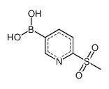 Product Name: 6-(methylsulfonyl)pyridine-3-boronic acid Order number: 208057 CAS: 1088496-41-6 Purity: 98% Appearance: n.a. MF: C6H8BNO4S MW: 201.008 MP: n.a. oC Description: Boronic acids are widely used in organic chemistry, pharmaceuticals, materials science, and sensor technology. |