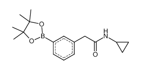 Product Name: N-Cyclopropyl-2-[3-(4,4,5,5-tetramethyl-1,3,2-dioxaborolan-2-yl)phenyl]acetamide Order number: 208058 CAS: 1031747-48-4 Purity: 96% Appearance: n.a. MF: C17H24BNO3 MW: 301.188 MP: n.a. oC Description: Boronic acids are widely used in organic chemistry, pharmaceuticals, materials science, and sensor technology. |