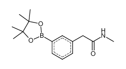 Product Name: N-Methyl-2-[3-(4,4,5,5-tetramethyl-1,3,2-dioxaborolan-2-yl)phenyl]acetamide Order number: 208059 CAS: 1036761-96-2 Purity: 96% Appearance: n.a. MF: C15H22BNO3 MW: 275.151 MP: n.a. oC Description: Boronic acids are widely used in organic chemistry, pharmaceuticals, materials science, and sensor technology. |