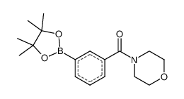 Product Name: 4-[3-(4,4,5,5-Tetramethyl-1,3,2-dioxaborolan-2-yl)benzoyl]morpholine Order number: 208111 CAS: 1036991-25-9 Purity: 98% Appearance: n.a. MF: C17H24BNO4 MW: 317.188 MP: n.a. oC Description: Boronic acids are widely used in organic chemistry, pharmaceuticals, materials science, and sensor technology. |