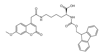 Product Name: N2-[(9H-Fluoren-9-ylmethoxy)carbonyl]-N6-[2-(7-methoxy-2-oxo-2H-1-benzopyran-4-yl)acetyl]-L-lysine Order number: 204419 CAS: 386213-32-7 Purity: >=95% Appearance: solid MF: C33H32N2O8 MW: 584.625 MP: n.a. oC Description: This is a valuable fluorescent to label peptide at N-terminal. |