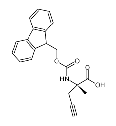 Product Name: (2R)-2-[[(9H-Fluoren-9-ylmethoxy)carbonyl]amino]-2-methyl-4-pentynoic acid Order number: 204700 CAS: 1198791-58-0 Purity: >=95% Appearance: solid MF: C21H19NO4 MW: 349.386 MP: n.a. oC Description: The alkynyl side chain of this product can be tied with an adjacent azido side chain pre-existed on the peptide backbone via click chemistry. |