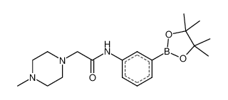 Product Name: 2-(4-Methylpiperazin-1-yl)-N-[3-(4,4,5,5-tetramethyl-1,3,2-dioxaborolan-2-yl)phenyl]acetamide Order number: 210431 CAS: 2057450-00-5 Purity: 95% Appearance: n.a. MF: C19H30BN3O3 MW: 359.271 MP: n.a. oC Description: Boronic acids are widely used in organic chemistry, pharmaceuticals, materials science, and sensor technology. |