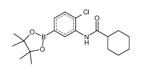 Product Name: N-(2-chloro-5-(4,4,5,5-tetramethyl-1,3,2-dioxaborolan-2-yl)phenyl)cyclohexanecarboxamide Order number: 210436 CAS: 2246655-25-2 Purity: 95% Appearance: n.a. MF: C19H27BClNO3 MW: 363.687 MP: n.a. oC Description: Boronic acids are widely used in organic chemistry, pharmaceuticals, materials science, and sensor technology. |