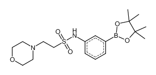 Product Name: 4-Morpholineethanesulfonamide, N-[3-(4,4,5,5-tetramethyl-1,3,2-dioxaborolan-2-yl)phenyl]- Order number: 210446 CAS: 756520-99-7 Purity: 95% Appearance: n.a. MF: C18H29BN2O5S MW: 396.309 MP: n.a. oC Description: Boronic acids are widely used in organic chemistry, pharmaceuticals, materials science, and sensor technology. |