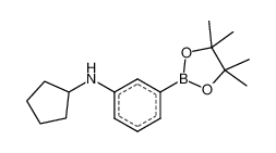 Product Name: N-cyclopentyl-3-(4,4,5,5-tetramethyl-1,3,2-dioxaborolan-2-yl)aniline Order number: 210447 CAS: 2267377-24-0 Purity: 95% Appearance: n.a. MF: C17H26BNO2 MW: 287.205 MP: n.a. oC Description: Boronic acids are widely used in organic chemistry, pharmaceuticals, materials science, and sensor technology. |