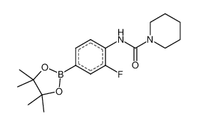 Product Name: N-(2-fluoro-4-(4,4,5,5-tetramethyl-1,3,2-dioxaborolan-2-yl)phenyl)piperidine-1-carboxamide Order number: 210455 CAS: 2246811-65-2 Purity: 95% Appearance: n.a. MF: C18H26BFN2O3 MW: 348.22 MP: n.a. oC Description: Boronic acids are widely used in organic chemistry, pharmaceuticals, materials science, and sensor technology. |
