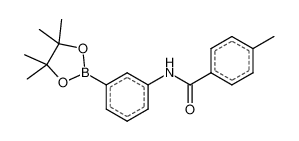 Product Name: 4-methyl-N-(3-(4,4,5,5-tetramethyl-1,3,2-dioxaborolan-2-yl)phenyl)benzamide Order number: 210462 CAS: 2246615-20-1 Purity: 95% Appearance: n.a. MF: C20H24BNO3 MW: 337.221 MP: n.a. oC Description: Boronic acids are widely used in organic chemistry, pharmaceuticals, materials science, and sensor technology. |