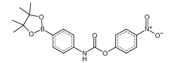 Product Name: Carbamic acid, N-[4-(4,4,5,5-tetramethyl-1,3,2-dioxaborolan-2-yl)phenyl]-, 4-nitrophenyl ester Order number: 210463 CAS: 957198-19-5 Purity: 95% Appearance: n.a. MF: C19H21BN2O6 MW: 384.191 MP: n.a. oC Description: Boronic acids are widely used in organic chemistry, pharmaceuticals, materials science, and sensor technology. |