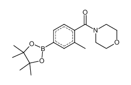 Product Name: (2-methyl-4-(4,4,5,5-tetramethyl-1,3,2-dioxaborolan-2-yl)phenyl)(morpholino)methanone Order number: 210481 CAS: 1013643-15-6 Purity: 95% Appearance: n.a. MF: C18H26BNO4 MW: 331.214 MP: n.a. oC Description: Boronic acids are widely used in organic chemistry, pharmaceuticals, materials science, and sensor technology. |