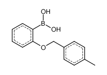 Product Name: Boronic acid, B-[2-[(4-methylphenyl)methoxy]phenyl]- Order number: 210483 CAS: 1311182-72-5 Purity: 95% Appearance: n.a. MF: C14H15BO3 MW: 242.078 MP: n.a. oC Description: Boronic acids are widely used in organic chemistry, pharmaceuticals, materials science, and sensor technology. |