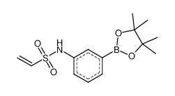 Product Name: Ethenesulfonamide, N-[3-(4,4,5,5-tetramethyl-1,3,2-dioxaborolan-2-yl)phenyl]- Order number: 210485 CAS: 1912447-03-0 Purity: 95% Appearance: n.a. MF: C14H20BNO4S MW: 309.189 MP: n.a. oC Description: Boronic acids are widely used in organic chemistry, pharmaceuticals, materials science, and sensor technology. |