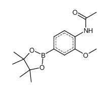 Product Name: N-(2-methoxy-4-(4,4,5,5-tetramethyl-1,3,2-dioxaborolan-2-yl)phenyl)acetamide Order number: 210489 CAS: 919496-45-0 Purity: 95% Appearance: n.a. MF: C15H22BNO4 MW: 291.151 MP: n.a. oC Description: Boronic acids are widely used in organic chemistry, pharmaceuticals, materials science, and sensor technology. |