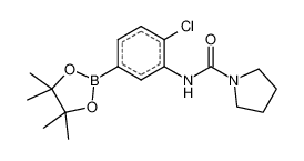 Product Name: N-(2-chloro-5-(4,4,5,5-tetramethyl-1,3,2-dioxaborolan-2-yl)phenyl)pyrrolidine-1-carboxamide Order number: 210530 CAS: 2246877-79-0 Purity: 95% Appearance: n.a. MF: C17H24BClN2O3 MW: 350.648 MP: n.a. oC Description: Boronic acids are widely used in organic chemistry, pharmaceuticals, materials science, and sensor technology. |