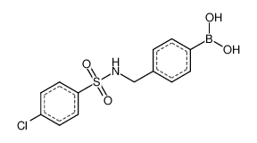 Product Name: (4-(((4-chlorophenyl)sulfonamido)methyl)phenyl)boronic acid Order number: 210531 CAS: 1809866-76-9 Purity: 95% Appearance: n.a. MF: C13H13BClNO4S MW: 325.576 MP: n.a. oC Description: Boronic acids are widely used in organic chemistry, pharmaceuticals, materials science, and sensor technology. |