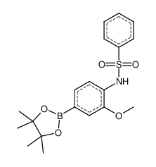 Product Name: N-(2-methoxy-4-(4,4,5,5-tetramethyl-1,3,2-dioxaborolan-2-yl)phenyl)benzenesulfonamide Order number: 210539 CAS: 1211366-27-6 Purity: 95% Appearance: n.a. MF: C19H24BNO5S MW: 389.274 MP: n.a. oC Description: Boronic acids are widely used in organic chemistry, pharmaceuticals, materials science, and sensor technology. |