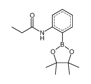 Product Name: N-(2-(4,4,5,5-tetramethyl-1,3,2-dioxaborolan-2-yl)phenyl)propionamide Order number: 210572 CAS: 397843-97-9 Purity: 95% Appearance: n.a. MF: C15H22BNO3 MW: 275.151 MP: n.a. oC Description: Boronic acids are widely used in organic chemistry, pharmaceuticals, materials science, and sensor technology. |