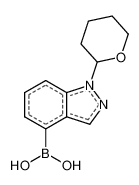 Product Name: 1-(Tetrahydro-2H-pyran-2-yl)-1H-indazol-4-yl-4-boronic acid Order number: 210641 CAS: 2056937-90-5 Purity: 97% Appearance: n.a. MF: C12H15BN2O3 MW: 246.07 MP: n.a. oC Description: Boronic acids are widely used in organic chemistry, pharmaceuticals, materials science, and sensor technology. |