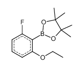 Product Name: 1,3,2-Dioxaborolane, 2-(2-ethoxy-6-fluorophenyl)-4,4,5,5-tetramethyl- Order number: 210991 CAS: 1689470-54-9 Purity: >95% Appearance: n.a. MF: C14H20BFO3 MW: 266.116 MP: n.a. oC Description: Boronic acids are widely used in organic chemistry, pharmaceuticals, materials science, and sensor technology. |