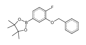 Product Name: 1,3,2-Dioxaborolane, 2-[4-fluoro-3-(phenylmethoxy)phenyl]-4,4,5,5-tetramethyl- Order number: 211025 CAS: 2121515-23-7 Purity: >95% Appearance: n.a. MF: C19H22BFO3 MW: 328.186 MP: n.a. oC Description: Boronic acids are widely used in organic chemistry, pharmaceuticals, materials science, and sensor technology. |