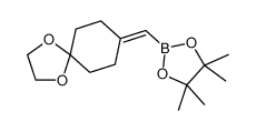 Product Name: 2-((1?4-dioxaspiro[4.5]decan-8-ylidene)methyl)-4?4?5?5-tetramethyl-1?3?2-dioxaborolane Order number: 211081 CAS: 2246878-23-7 Purity: 98% Appearance: n.a. MF: C15H25BO4 MW: 280.168 MP: n.a. oC Description: Boronic acids are widely used in organic chemistry, pharmaceuticals, materials science, and sensor technology. |