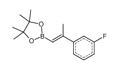 Product Name: 2-(2-(3-fluorophenyl)prop-1-en-1-yl)-4?4?5?5-tetramethyl-1?3?2-dioxaborolane Order number: 211083 CAS: 1398771-28-2 Purity: 98% Appearance: n.a. MF: C15H20BFO2 MW: 262.128 MP: n.a. oC Description: Boronic acids are widely used in organic chemistry, pharmaceuticals, materials science, and sensor technology. |