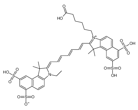 Product Name: CY7-N3 Order number: 204600 CAS: N/A Purity: >=95% Appearance: solid MF: C38H48N6O7S2 MW: 764.957 MP: n.a. oC Description: This sulfo-Cy7-N3 is more bathochromic than its Cy5-N3 analog, and taggs biomolecules by reacting with a alkyne group. |