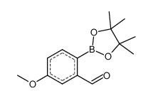 Product Name: 5-Methoxy-2-(4,4,5,5-tetraMethyl-1,3,2-dioxaborolan-2-yl)benzaldehyde Order number: 208157 CAS: 1132669-90-9 Purity: 96% Appearance: n.a. MF: C14H19BO4 MW: 262.109 MP: n.a. oC Description: Boronic acids are widely used in organic chemistry, pharmaceuticals, materials science, and sensor technology. |