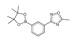 Product Name: 5-Methyl-3-(3-(4,4,5,5-tetramethyl-1,3,2-dioxaborolan-2-yl)phenyl)-1,2,4-oxadiazole Order number: 208237 CAS: 1256359-28-0 Purity: 96% Appearance: n.a. MF: C15H19BN2O3 MW: 286.134 MP: n.a. oC Description: Boronic acids are widely used in organic chemistry, pharmaceuticals, materials science, and sensor technology. |