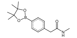 Product Name: N-Methyl-2-(4-(4,4,5,5-tetramethyl-1,3,2-dioxaborolan-2-yl)phenyl)acetamide Order number: 208247 CAS: 1256359-34-8 Purity: 98% Appearance: n.a. MF: C15H22BNO3 MW: 275.151 MP: n.a. oC Description: Boronic acids are widely used in organic chemistry, pharmaceuticals, materials science, and sensor technology. |