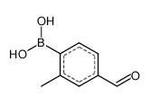 Product Name: (4-FORMYL-2-METHYLPHENYL)BORONIC ACID Order number: 208430 CAS: 156428-81-8 Purity: 98% Appearance: n.a. MF: C8H9BO3 MW: 163.966 MP: n.a. oC Description: Boronic acids are widely used in organic chemistry, pharmaceuticals, materials science, and sensor technology. |