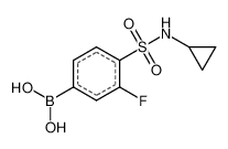 Product Name: (4-(N-cyclopropylsulfaMoyl)-3-fluorophenyl)boronic acid Order number: 208502 CAS: 1704096-55-8 Purity: 95% Appearance: n.a. MF: C9H11BFNO4S MW: 259.062 MP: n.a. oC Description: Boronic acids are widely used in organic chemistry, pharmaceuticals, materials science, and sensor technology. |
