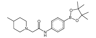 Product Name: 2-(4-Methylpiperidin-1-yl)-N-(4-(4,4,5,5-tetraMethyl-1,3,2-dioxaborolan-2-yl)phenyl)acetaMide Order number: 208511 CAS: 1704120-84-2 Purity: 95% Appearance: n.a. MF: C20H31BN2O3 MW: 358.283 MP: n.a. oC Description: Boronic acids are widely used in organic chemistry, pharmaceuticals, materials science, and sensor technology. |