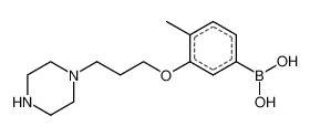 Product Name: 4-Methyl-3-(3-(piperazin-1-yl)propoxy)phenylboronic acid Order number: 208529 CAS: 1704064-32-3 Purity: 95% Appearance: n.a. MF: C14H23BN2O3 MW: 278.155 MP: n.a. oC Description: Boronic acids are widely used in organic chemistry, pharmaceuticals, materials science, and sensor technology. |