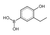 Product Name: (3-ethyl-4-hydroxyphenyl)boronic acid Order number: 208534 CAS: 1641540-51-3 Purity: ?95% Appearance: n.a. MF: C8H11BO3 MW: 165.982 MP: n.a. oC Description: Boronic acids are widely used in organic chemistry, pharmaceuticals, materials science, and sensor technology. |