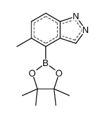 Product Name: 5-methyl-4-(4,4,5,5-tetramethyl-1,3,2-dioxaborolan-2-yl)-1H-indazole Order number: 208542 CAS: 1689539-29-4 Purity: 97% Appearance: n.a. MF: C14H19BN2O2 MW: 258.124 MP: n.a. oC Description: Boronic acids are widely used in organic chemistry, pharmaceuticals, materials science, and sensor technology. |