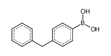 Product Name: BORONIC ACID, [4-(PHENYLMETHYL)PHENYL]- Order number: 208825 CAS: 56311-13-8 Purity: 98% Appearance: n.a. MF: C13H13BO2 MW: 212.052 MP: n.a. oC Description: Boronic acids are widely used in organic chemistry, pharmaceuticals, materials science, and sensor technology. |
