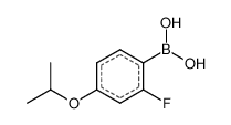 Product Name: (2-Fluoro-4-isopropoxyphenyl)boronic acid Order number: 208877 CAS: 586389-90-4 Purity: 98% Appearance: n.a. MF: C9H12BFO3 MW: 197.999 MP: n.a. oC Description: Boronic acids are widely used in organic chemistry, pharmaceuticals, materials science, and sensor technology. |
