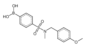 Product Name: 4-[N-METHYL-N-(4-METHOXYBENZYL)SULPHAMOYL]BENZENEBORONIC ACID 96 Order number: 208996 CAS: 913835-54-8 Purity: 98% Appearance: n.a. MF: C15H18BNO5S MW: 335.183 MP: n.a. oC Description: Boronic acids are widely used in organic chemistry, pharmaceuticals, materials science, and sensor technology. |