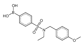 Product Name: 4-[N-ETHYL-N-(4-METHOXYBENZYL)SULPHAMOYL]BENZENEBORONIC ACID 98 Order number: 208998 CAS: 913835-55-9 Purity: 98% Appearance: n.a. MF: C16H20BNO5S MW: 349.21 MP: n.a. oC Description: Boronic acids are widely used in organic chemistry, pharmaceuticals, materials science, and sensor technology. |