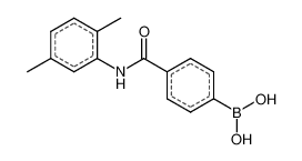 Product Name: 4-(2,5-DIMETHYLPHENYLCARBAMOYL)PHENYLBORONIC ACID Order number: 208999 CAS: 913835-40-2 Purity: 95% Appearance: n.a. MF: C15H16BNO3 MW: 269.103 MP: n.a. oC Description: Boronic acids are widely used in organic chemistry, pharmaceuticals, materials science, and sensor technology. |