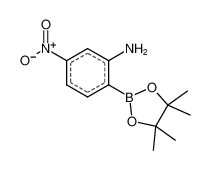 Product Name: 5-Nitro-2-(tetramethyl-1,3,2-dioxaborolan-2-yl)aniline Order number: 209284 CAS: 1421322--2 Purity: 96% Appearance: n.a. MF: C12H17BN2O4 MW: 264.085 MP: n.a. oC Description: Boronic acids are widely used in organic chemistry, pharmaceuticals, materials science, and sensor technology. |