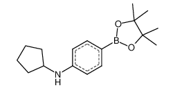 Product Name: N-cyclopentyl-4-(tetramethyl-1,3,2-dioxaborolan-2-yl)aniline Order number: 209332 CAS: 1430474-31-9 Purity: 95% Appearance: n.a. MF: C17H26BNO2 MW: 287.205 MP: n.a. oC Description: Boronic acids are widely used in organic chemistry, pharmaceuticals, materials science, and sensor technology. |
