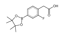 Product Name: [2-fluoro-4-(tetramethyl-1,3,2-dioxaborolan-2-yl)phenyl]acetic acid Order number: 209333 CAS: 1431546-20-1 Purity: 96% Appearance: n.a. MF: C14H18BFO4 MW: 280.1 MP: n.a. oC Description: Boronic acids are widely used in organic chemistry, pharmaceuticals, materials science, and sensor technology. |