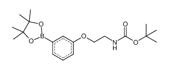 Product Name: 3-[2-(Boc-amino)ethoxy]phenylboronicAcidPinacolEster Order number: 209336 CAS: 1505516-19-7 Purity: ?95% Appearance: n.a. MF: C19H30BNO5 MW: 363.256 MP: n.a. oC Description: Boronic acids are widely used in organic chemistry, pharmaceuticals, materials science, and sensor technology. |