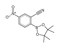 Product Name: 5-Nitro-2-(tetramethyl-1,3,2-dioxaborolan-2-yl)benzonitrile Order number: 209372 CAS: 1565857-68-2 Purity: 95% Appearance: n.a. MF: C13H15BN2O4 MW: 274.08 MP: n.a. oC Description: Boronic acids are widely used in organic chemistry, pharmaceuticals, materials science, and sensor technology. |