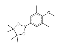Product Name: 1,3,2-Dioxaborolane,2-(4-methoxy-3,5-dimethylphenyl)-4,4,5,5-tetramethyl- Order number: 209481 CAS: 568572-19-0 Purity: 96% Appearance: n.a. MF: C15H23BO3 MW: 262.152 MP: n.a. oC Description: Boronic acids are widely used in organic chemistry, pharmaceuticals, materials science, and sensor technology. |