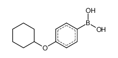 Product Name: Boronic acid, [4-(cyclohexyloxy)phenyl]- Order number: 209482 CAS: 570398-88-8 Purity: 98% Appearance: n.a. MF: C12H17BO3 MW: 220.073 MP: n.a. oC Description: Boronic acids are widely used in organic chemistry, pharmaceuticals, materials science, and sensor technology. |